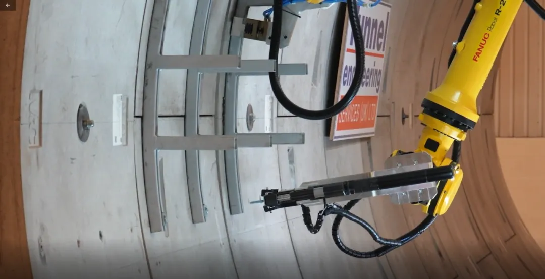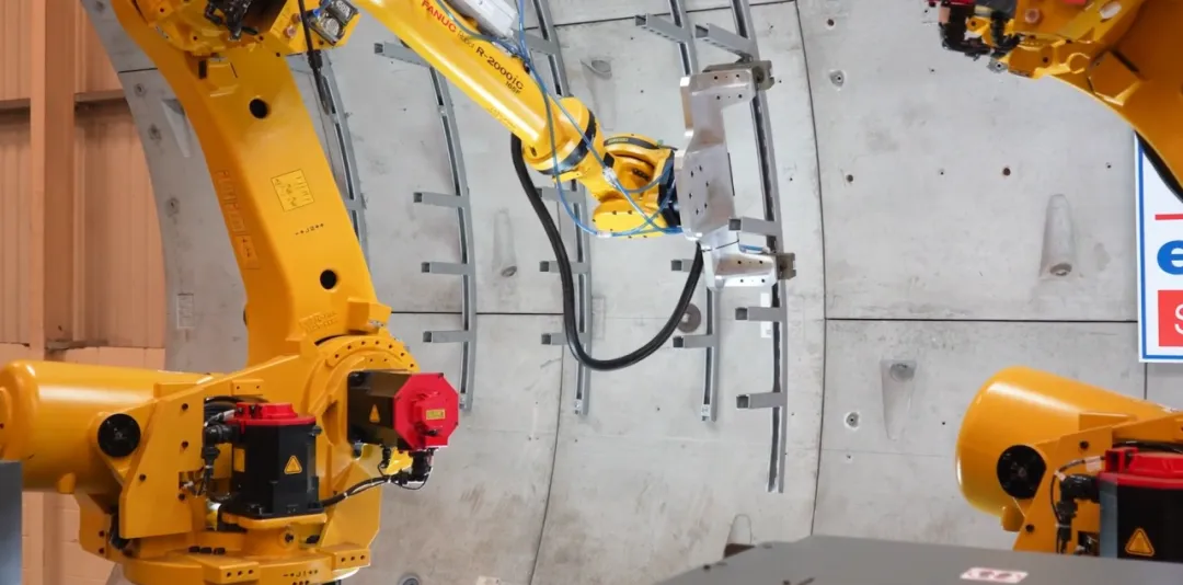 自動(dòng)化隧道機(jī)器人安裝系統(tǒng)(ATRIS)演示視頻,該系統(tǒng)已經(jīng)能夠完成隧道的機(jī)電和配套設(shè)施安裝工作,其主要結(jié)構(gòu)為兩臺(tái)機(jī)械臂,一臺(tái)機(jī)械臂為支架安裝機(jī)械臂,可自主選擇支架,并沿隧道壁找到需要安裝的位置。另一臺(tái)機(jī)械臂則用于安裝螺絲,在支架機(jī)械臂將支架固定到位后,可自主定位螺絲的安裝位置,并拿取螺絲,完成整個(gè)安裝過程。