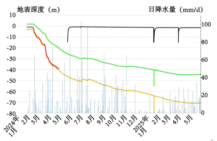 觀測井地下水位折線圖、降水量柱狀圖