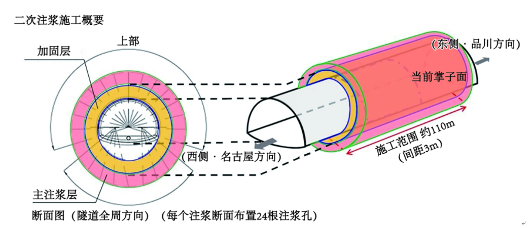 但在2024年7月下旬加固層施工期間,類似工法在鹿兒島縣北薩橫斷道路北薩隧道的事故引發(fā)了對其安全性的質(zhì)疑。該隧道曾因內(nèi)襯混凝土崩落、土砂涌入坑內(nèi)的問題被迫停工。受此影響,JR東海于2024年8月中止了原定于當(dāng)月實施的主注漿計劃,并重新評估工法可行性。至2024年12月,基于結(jié)構(gòu)穩(wěn)定性考量,加固層施工全部實施完畢。