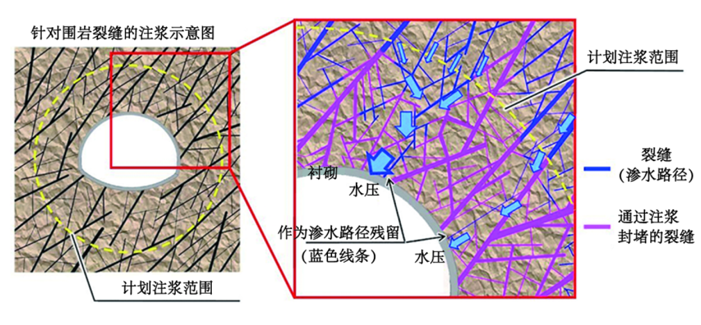集中涌水侵蝕風(fēng)險:注漿材料未能完全封堵的裂隙可能成為地下水集中通道,高壓水流直接沖擊隧道結(jié)構(gòu)。日吉隧道周邊為花崗巖地層,裂隙長度、方向復(fù)雜,注漿材料滲透范圍存在不確定性,可能殘留滲水路徑。
