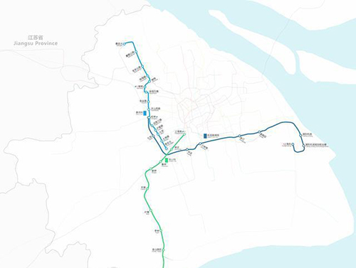 下面是上海軌道交通機場聯(lián)絡線的線路圖。