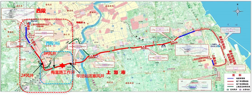 上海市軌道交通市域線機(jī)場(chǎng)聯(lián)絡(luò)線工程西段位于閔行區(qū)境內(nèi),具體范圍為:虹橋樞紐(不含)—華涇站東端頭井,線路全長(zhǎng)18.834千米。工程內(nèi)容包括正線區(qū)間(含路基段、橋梁段、隧道段)、七寶站、華涇站(含活塞風(fēng)井)、梅富路工作井以及3座中間風(fēng)井。
