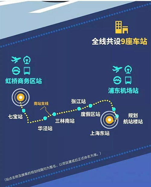 上海機(jī)場(chǎng)聯(lián)絡(luò)線是國(guó)家發(fā)改委首批確定的全國(guó)11條市域鐵路示范線路之一,全線共設(shè)虹橋站、七寶站、華涇站、三林南站、張江站、度假區(qū)站、浦東機(jī)場(chǎng)站、浦東機(jī)場(chǎng)規(guī)劃航站樓站、上海東站(暫命名)共9座車站。線路全長(zhǎng)68.6公里,逾88%為地下線,是全國(guó)首例以地下線路為主的市域線。未來(lái),浦東機(jī)場(chǎng)和虹橋機(jī)場(chǎng)之間的用時(shí)將縮短到40分鐘左右。工程預(yù)計(jì)2024年完成。