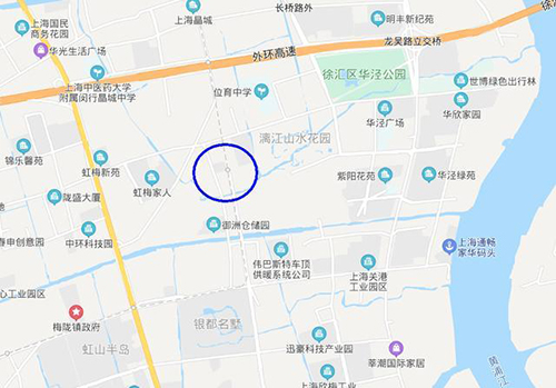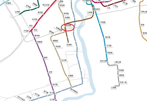 上海軌道交通機(jī)場聯(lián)絡(luò)線華涇站的位置如下所示,圖中的虛線是15號線的建設(shè)。