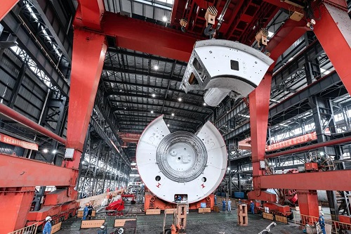 近日,機場聯(lián)絡(luò)線14m直徑泥水氣平衡盾構(gòu)機1號機刀盤近日完成總裝,標志著整體制造進入收尾階段,接下來將進入整體調(diào)試。